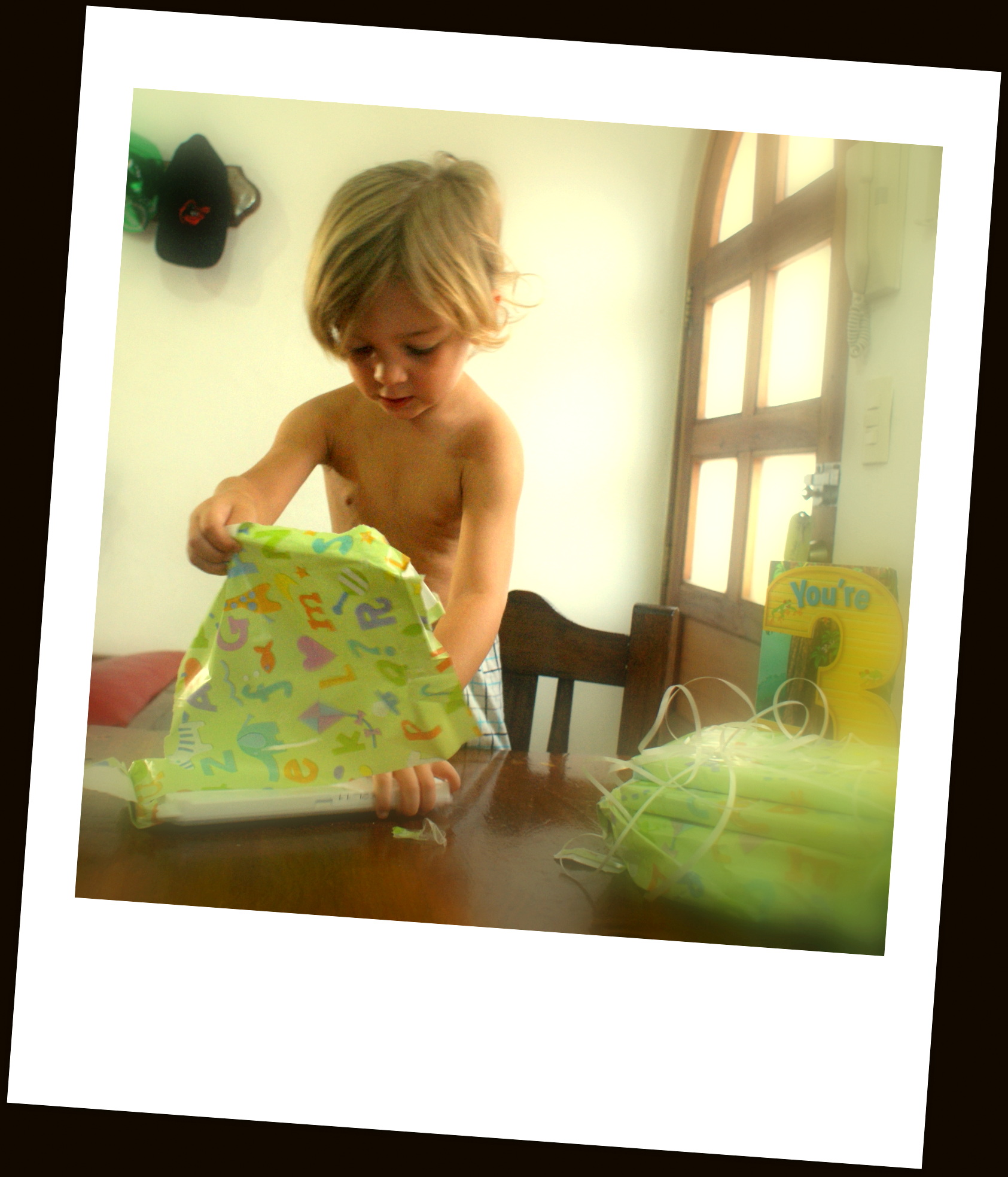 Why not start out your birthday with cupcakes right? Every three-year-old deserves to eat cupcakes for breakfast on their birthday while ripping wrapping paper from his stash of gifts.