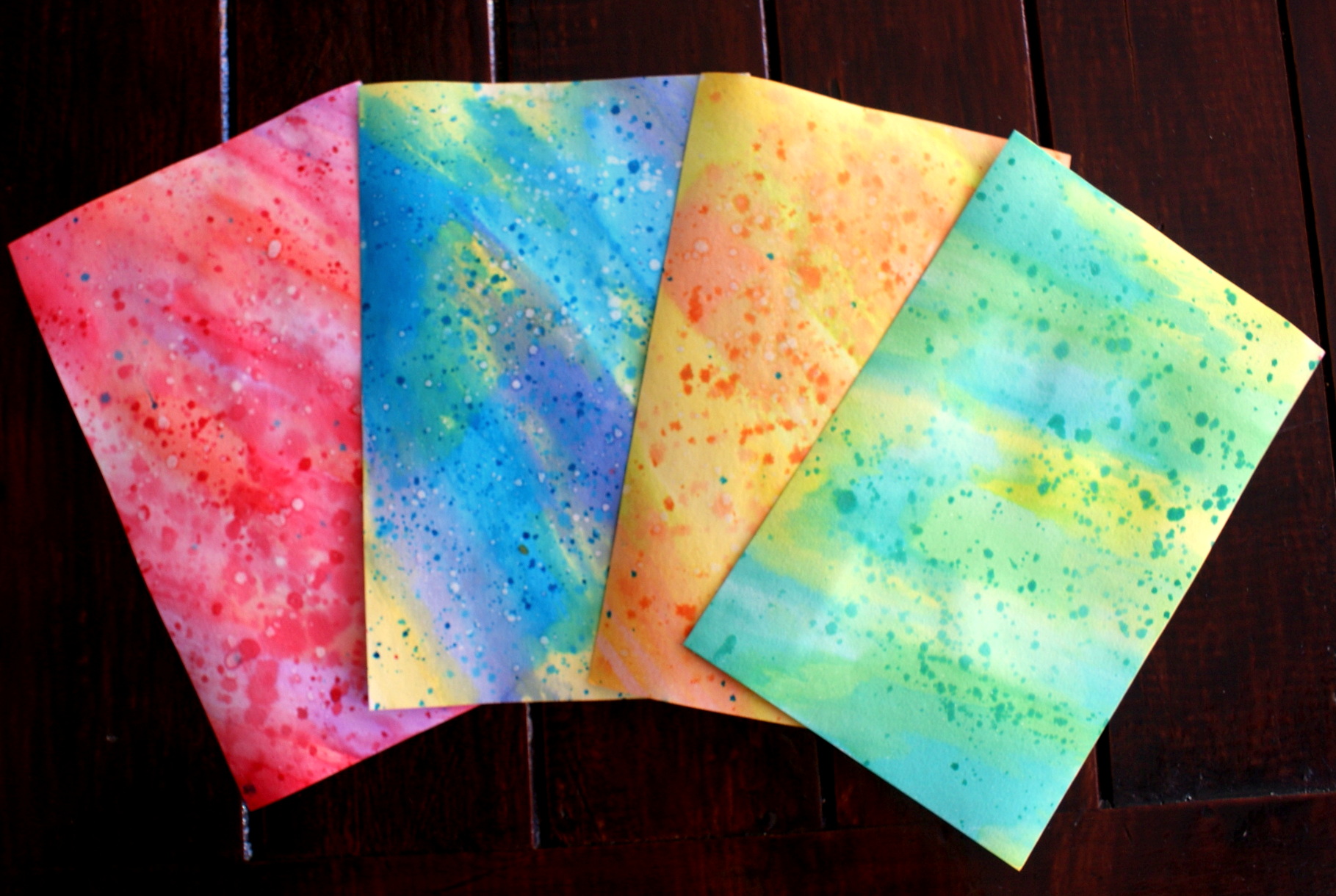 After you paint the card let it dry for 5 minutes and flick a darker color all over, leaving paint splotches.
