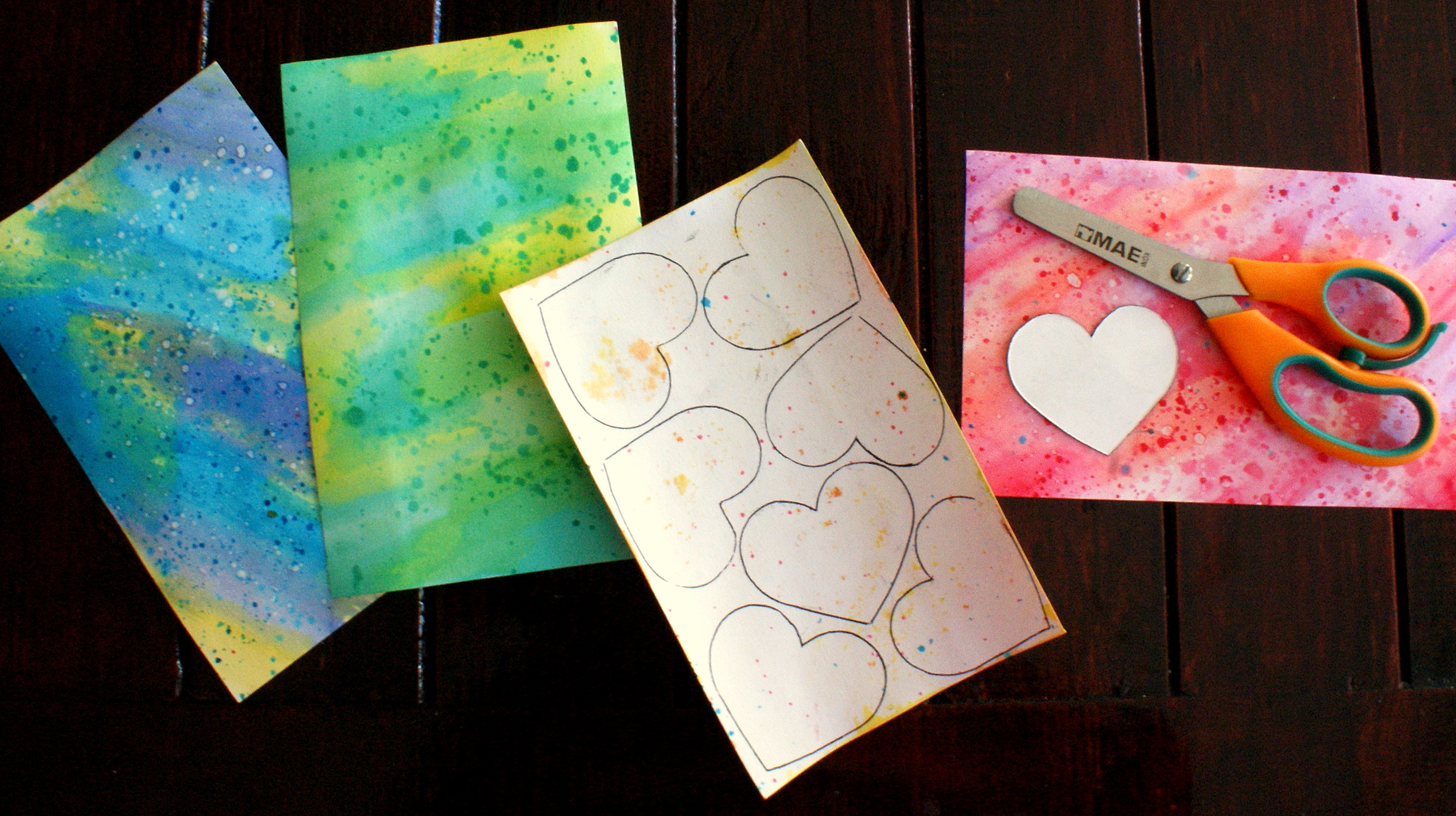 Paint the card stock in colors you love. Being that I am in Mexico, I chose to make my treats colorful and Valentine’s Day in the Yucatan isn’t limited to red, pink and white .