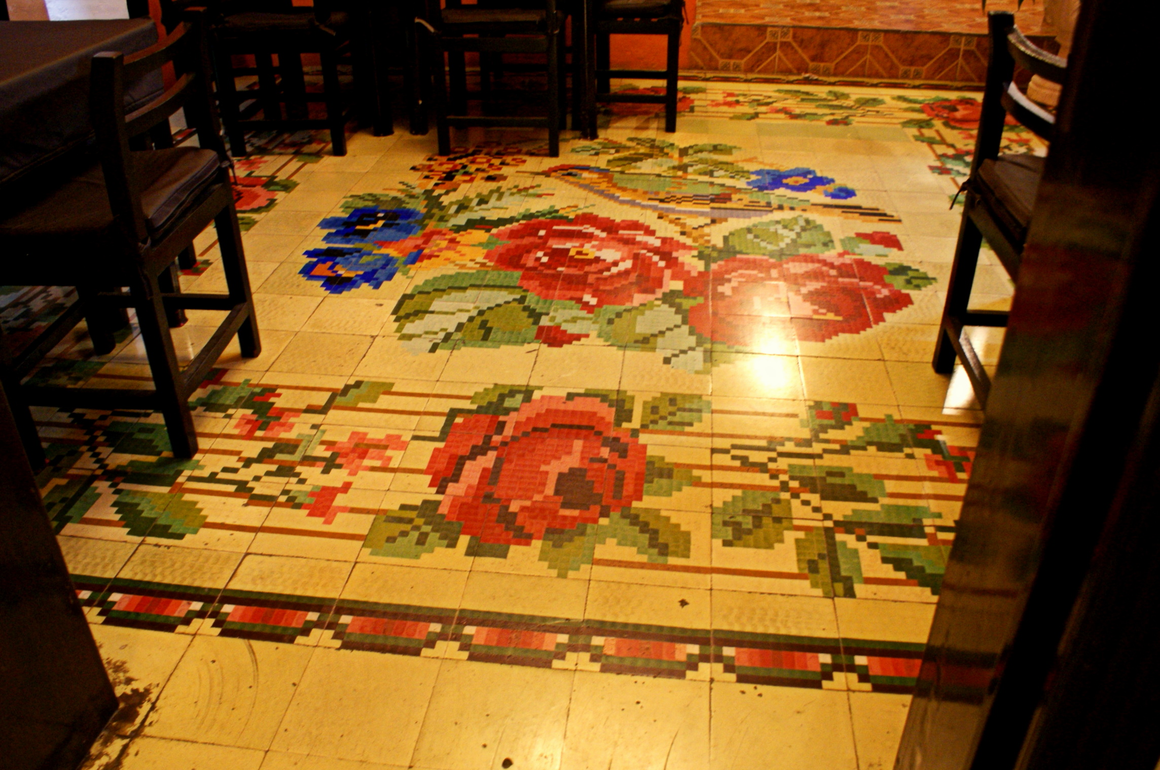 Dinner at La Colzada was served on mismatched plates under historic tile with tile designed ages ago and a pixilated antique rose leading into the dining room.  When our entrees arrive I’m presented with bland looking but an ever so succulent shrimp fettuccini bathed in a puddle of spiced garlic butter and my son quickly pops shrimp in his mouth.
