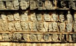 Artwork throughout temples displayed gods wearing feathers signifying the sky or heavens. One relief depicts an eagle grasping the heart of the world. Other images of Mesoamerican ball players hold headless opponents in their hands. People have their own interpretation as to the violence depicted on the Mayan ruins.