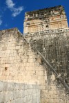 The main pyramid Kukulcán, or Castillo, a name given by the Spanish in 1527, was more beautiful than I could have imagined. I’m sure everyone says that, but it is true! The four-sided newly renowned man made 7th wonder of the world demands your attention like a feisty woman in a skin tight one-piece leather suit cracking a whip. Feeling insignificant is a marvelous thing.