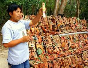 Mayan man displaying natural colors of the masks