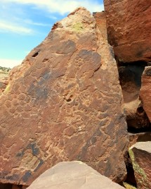 As I hike Petroglyph Trail with my family toward the top of a smaller mountain I quickly realize the park is littered with petroglyphs as I climb rock stairs with depictions in them.