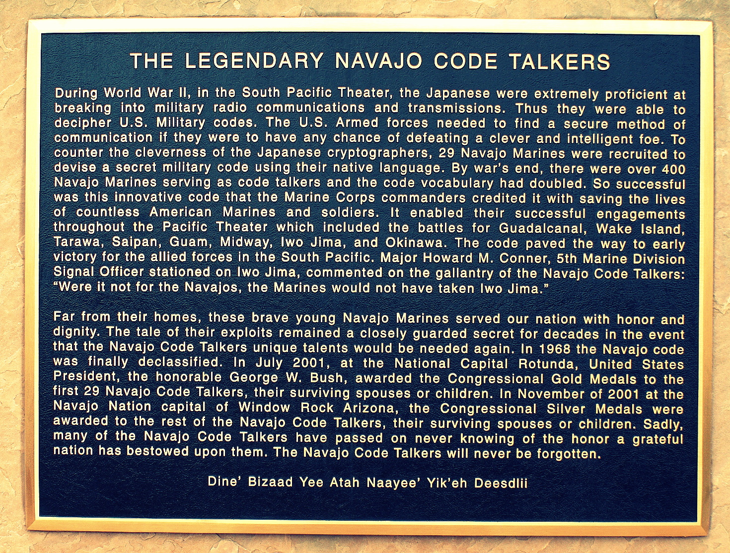 Historians credit the Navajo Code Talkers for aiding in the victory of World War II.