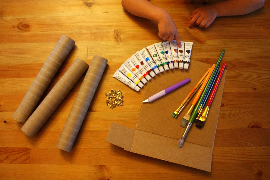 If you are using paper towel rolls, cut the paper towel rolls to the size of a toilet paper roll. Paint the inside of the rolls white and the outside a solid color.