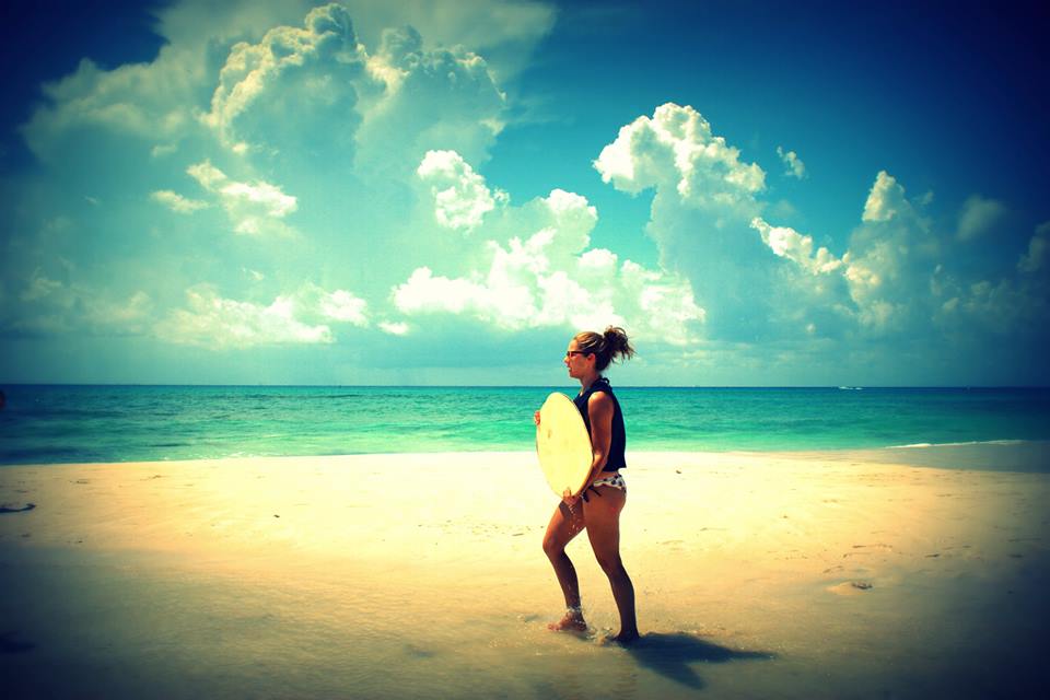 After watching skimboarders on the beaches of Playa del Carmen, Mexico I knew I wanted to try my hand at skimming the Caribbean waters. I saw a flier advertising a skimboard and went to pick it up.