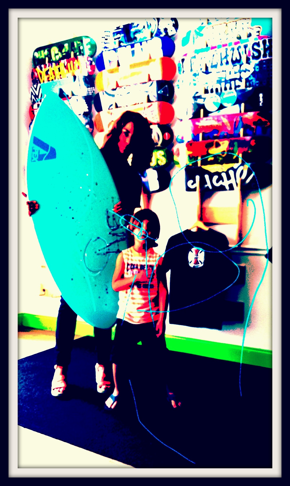 Hayes and mother purchasing their third skimboard at 801 Skate Shop in Safety Harbor, Florida.